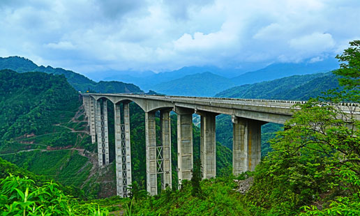 雅西高速公路臘八斤特大橋全長1106米,主橋為105+200*2+105米預(yù)應(yīng)力混凝土懸澆連續(xù)鋼構(gòu),橋高230米。其主墩高182.6米,是目前世界同類型最高橋墩。其“鋼管疊合柱”和C80號混凝土自密實澆筑工藝,為我國橋梁首列。