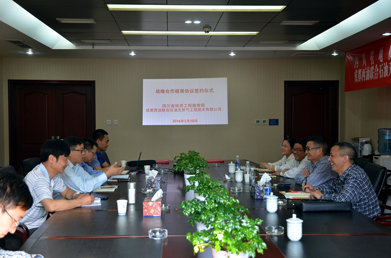 5月10日,在我院321會(huì)議室舉行了四川省地質(zhì)工程勘察院與成都西油聯(lián)合石油天然氣工程技術(shù)有限公司戰(zhàn)略合作框架協(xié)議簽署儀式。院長(zhǎng)安世澤、黨委書(shū)記陽(yáng)光輝、水文地質(zhì)工程公司總經(jīng)理張恒,成都西油聯(lián)合石油天然氣工程技術(shù)有限公司總裁牟德剛、技術(shù)總監(jiān)廖忠會(huì)等出席了簽約儀式。