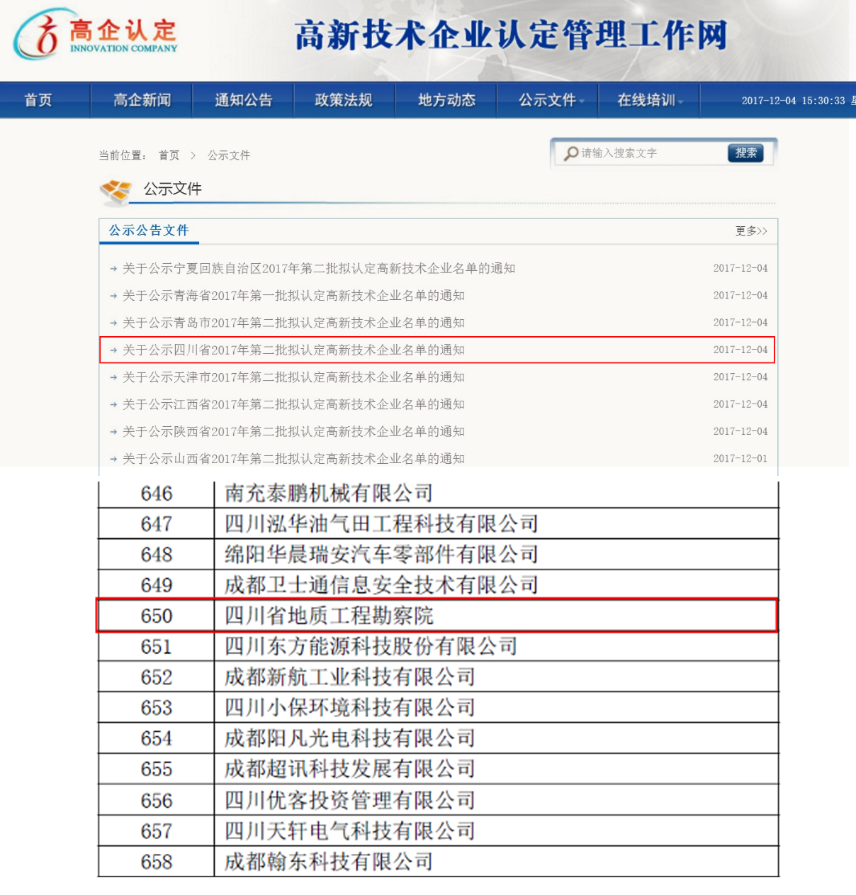 12月4日,國(guó)家高新技術(shù)企業(yè)認(rèn)定官網(wǎng)發(fā)布了“四川省2017年第二批擬認(rèn)定高新技術(shù)企業(yè)的公示名單”,四川地質(zhì)工程勘察院名列其中,榮膺高新技術(shù)企業(yè)認(rèn)定。
